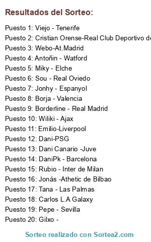 Lista de participantes: Miky - Elche, Borderline - Real Madrid, Jonhy - Espanyol, Tana - Las Palmas, Viejo - Tenerife, Gilxo -, Rubio - Inter de Milan, DaniPk - Barcelona, Dani-PSG, Sou - Real Oviedo, Carlos L.A Galaxy, Jonás -Athetic de Bilbao, Dani Canario -Juve, Emilio-Liverpool, Pepe - Sevilla, Antoñin - Watford, Borja - Valencia, Cristian Orense-Real Club Deportivo de la Coruña, Wiliki - Ajax, Webo-At.Madrid.