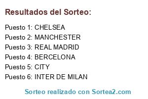 Lista de participantes: REAL MADRID, BERCELONA, INTER DE MILAN, CHELSEA, MANCHESTER, CITY.