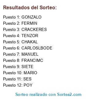 Lista de participantes: POY, MARIO, SIETE, CHAKAL, MANUEL, SES, CARLOSLBODE, FERMIN, TENZOR, GONZALO, FRANCIMC, CRACKERES.