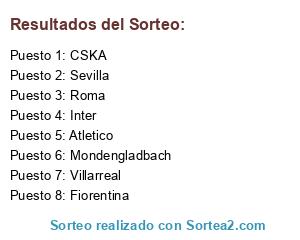Lista de participantes: Mondengladbach, CSKA, Inter, Villarreal, Atletico, Roma, Fiorentina, Sevilla.
