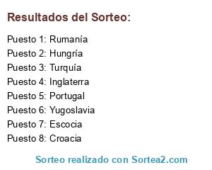 Lista de participantes: Yugoslavia, Inglaterra, Escocia, Croacia, Hungría, Rumanía, Turquía, Portugal.