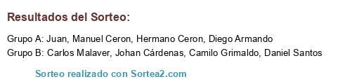 Lista de participantes: Juan, Johan Cárdenas, Camilo Grimaldo, Carlos Malaver, Daniel Santos, Manuel Ceron, Hermano Ceron, Diego Armando.