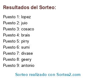 Lista de participantes: lopez, sumi, geery, antonio, juio, pirry, cosaco, brais, divase.