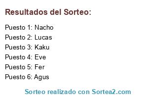 Lista de participantes: Eve, Fer, Agus, Kaku, Lucas, Nacho.