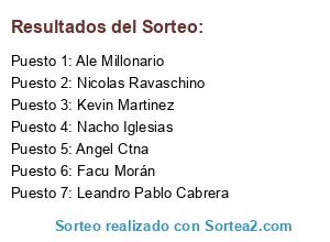 Lista de participantes: Nacho Iglesias, Angel Ctna, Ale Millonario, Kevin Martinez, Leandro Pablo Cabrera, Nicolas Ravaschino, Facu Morán.