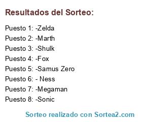 Lista de participantes: - Ness, -Sonic, -Shulk, -Samus Zero, -Zelda, -Megaman, -Marth, -Fox.