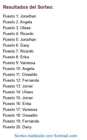 Lista de participantes: Ulises, Vanessa, Jonier, Angela, Erika, Dany, Jonathan, Oswaldo, Ricardo, Fernanda, Ulises, Vanessa, Jonier, Angela, Erika, Dany, Jonathan, Oswaldo, Ricardo, Fernanda.