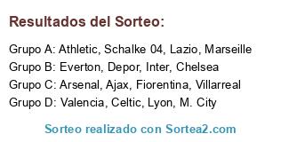 Lista de participantes: Athletic, Villarreal, Valencia, Depor, Schalke 04, Lyon, Marseille, Celtic, Fiorentina, Inter, Lazio, Ajax, M. City, Arsenal, Chelsea, Everton.