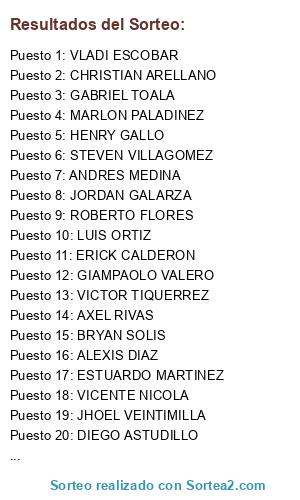 Resultados del sorteo: