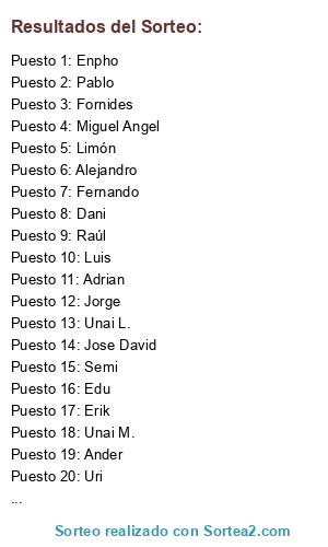 Resultados del sorteo: