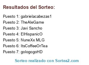 Lista de participantes: gologogoHD, NuneXx MLG, Cobalion172, ItsCoffeeOrTea, Javi Sancho, gabrielacabezas1, TheAleGame, Diegox7860, ElHispanicO, HarplickGamer.