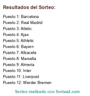 Lista de participantes: Inter, Albacete, Werder Bremen, Real Madrid, Atletic, Almeria, Bayern, Liverpool, Ajax, Marsella, Athletic, Barcelona.