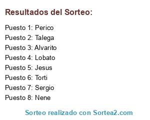 Lista de participantes: Sergio, Jesus, Nene, Talega, Perico, Torti, Lobato, Alvarito.