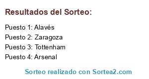 Lista de participantes: Tottenham, Zaragoza, Alavés, Arsenal.