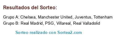 Lista de participantes: Chelsea, Valencia, Juventus, Madrid, Roma, Inter, Sporting, Barcelona.