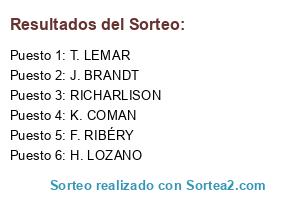 Lista de participantes: RICHARLISON, K. COMAN, T. LEMAR, J. BRANDT, F. RIBÉRY, H. LOZANO.