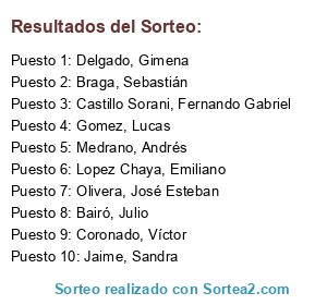 Lista de participantes: Bairó, Julio, Braga, Sebastián, Castillo Sorani, Fernando Gabriel, Coronado, Víctor, Delgado, Gimena, Gomez, Lucas, Jaime, Sandra, Lopez Chaya, Emiliano, Medrano, Andrés, Olivera, José Esteban.