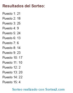 Resultados del sorteo: