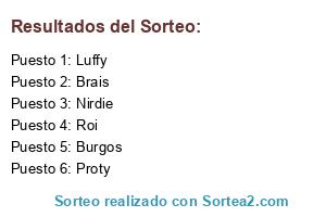 Lista de participantes: Brais, Luffy, Proty, Nirdie, Roi, Burgos.
