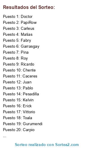 Lista de participantes: Garrasgay, PapiRow, Kelvin, Matias, Chente, Gurumendi, Julio, Erick, Pesadilla, Doctor, Ricardo, Carpio, Winder, Fabry, Pina, David, Caceres, Vittorio, Carleus, Toala, Zambrano, Roy, Juan, Pablo.