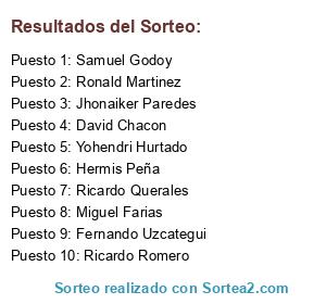 Lista de participantes: Luis Angulo, Luis Guevara, Miguel Farias, Ronald Martinez, Fernando Uzcategui, David Chacon, Manuel Pino, Yohendri Hurtado, Samuel Godoy, Jhonaiker Paredes, Ricardo Querales, Ricardo Romero, Hermis Peña.