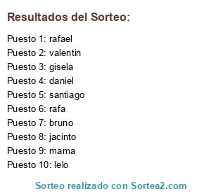 Lista de participantes: bruno, lelo, rafa, valentin, jacinto, daniel, gisela, santiago, rafael, mama.