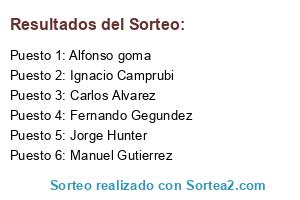 Lista de participantes: Carlos Alvarez, Ignacio Camprubi, Fernando Gegundez, Alfonso goma, Manuel Gutierrez, Jorge Hunter.