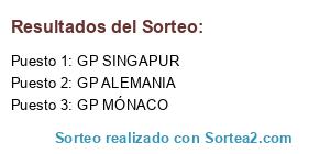 Lista de participantes: GP AUSTRALIA, GP MALASIA, GP BAHRÉIN, GP CHINA, GP ESPAÑA, GP MÓNACO, GP CANADÁ, GP AUSTRIA, GP GRAN BRETAÑA, GP ALEMANIA, GP HUNGRÍA, GP BÉLGICA, GP ITALIA, GP SINGAPUR, GP JAPÓN, GP RUSIA, GP ESTADOS UNIDOS, GP BRASIL, GP ABU DHABI.