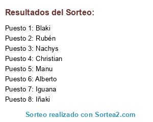 Lista de participantes: Iñaki, Rubén, Manu, Iguana, Nachys, Christian, Blaki, Alberto.