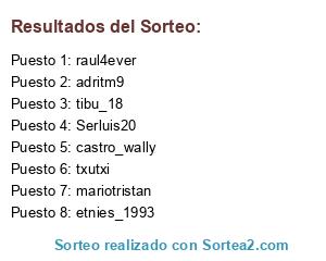 Lista de participantes: tibu_18, castro_wally, etnies_1993, adritm9, Serluis20, txutxi, mariotristan, raul4ever.