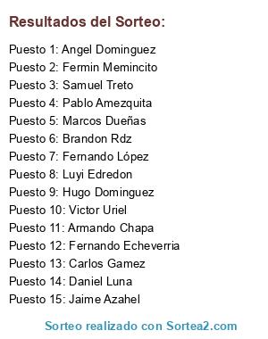 Lista de participantes: Pablo Amezquita, Carlos Gamez, Brandon Rdz, Victor Uriel Flo, Yo, Fermin Memincito Leon, Fernando Echeverria, Rod Mix LP, Hugo Dominguez Hernandez, Luyi Edredon, Daniel Luna Lopez, Jaime Azahel Juarez Rdz, Samuel Treto, Angel Dominguez, Armando Chapa Tejeda, Joel Medina, Panchoo de la Garzaa, Antony Mendez, Jesús González, Andres Roldan Mendoza, Jorge Trejo Espinosa, Ricardo Cachon, Ricardo Ramiro Rico.