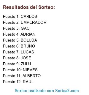 Lista de participantes: BOLUDA, JOSE, EMPERADOR, BRUNO, GACI, LUCAS, ADRIAN, ALBERTO, NIEVES, ZULU, CARLOS, RAUL.