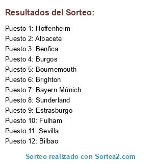 Lista de participantes: Bilbao, Burgos, Albacete, Estrasburgo, Fulham, Sevilla, Bayern Múnich, Bournemouth, Benfica, Brighton, Hoffenheim, Sunderland.