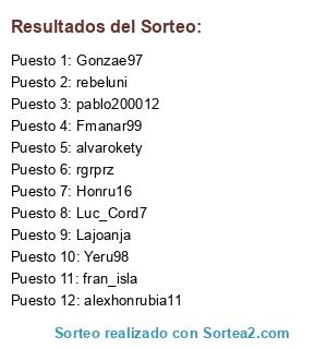 Lista de participantes: Lajoanja, Honru16, Gonzae97, alexhonrubia11, fran_isla, pablo200012, rebeluni, alvarokety, Yeru98, Luc_Cord7, Fmanar99, rgrprz.