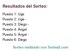 Lista de participantes: Ángel, Ángel -, Diego, Diego -, Uge, Uge -.