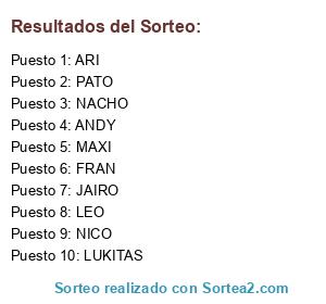 Resultados del sorteo: