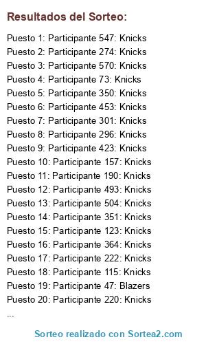 - Puesto 3: Participante 570: Knicks