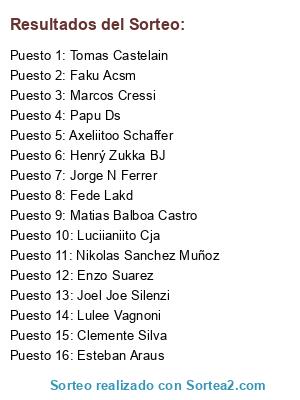 Lista de participantes: Joel Joe Silenzi, Tomas Castelain, Fede Lakd, Lulee Vagnoni, Henrý Zukka BJ, Papu Ds, Enzo Suarez, Matias Balboa Castro, Clemente Silva, Esteban Araus, Luciianiito Cja, Nikolas Sanchez Muñoz, Marcos Cressi, Faku Acsm, Jorge N Ferrer, Axeliitoo Schaffer.