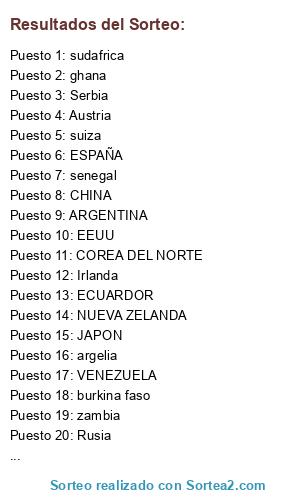 Lista de participantes: Alemania , ARABIA SAUDITA, argelia , ARGENTINA , AUSTRALIA , Austria , Belgium , Bosnia y Herzegovina , BRASIL, Bulgaria, burkina faso, camerun, CHILE , CHINA , COLOMBIA , COREA DEL NORTE , COREA DEL SUR , costa de marfil, COSTA RICA , Croacia , Dinamarca , ECUARDOR , EEUU, egipto , Escocia , ESPAÑA, FRANCIA, ghana, Grecia , holanda, HONDURAS , Inglaterra, IRAN, Irlanda , Italia , JAMAICA , JAPON , KUWAIT, LIBANO, marruecos, MEXICO, nigeria , Noruega , NUEVA ZELANDA, PANAMA, PARAGUAY, PERU, Portugal , República Checa , Rumania, Rusia , senegal, Serbia , sudafrica , Suecia , suiza, tunez , Turquía, URUGUAY, VENEZUELA, zambia.
