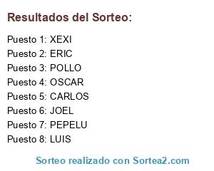 Lista de participantes: XEXI, JOEL, POLLO, LUIS, OSCAR, PEPELU, CARLOS, ERIC.