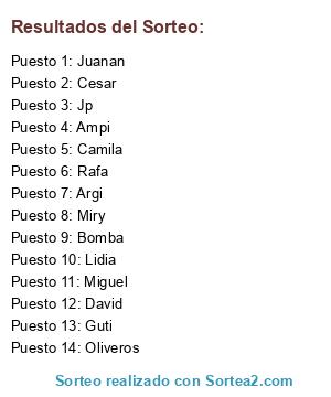 Resultados del sorteo: