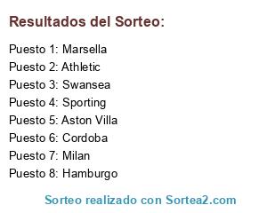 Resultados del sorteo:
