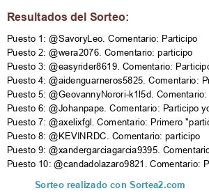 Lista de participantes: Sorteo realizado entre 114 comentarios..