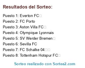 Lista de participantes: Everton FC , Tottenham Hotspur FC , SV Werder Bremen , Olympique Lyonnais, FC Schalke 04 , Aston Villa FC , Sevilla FC, FC Porto.