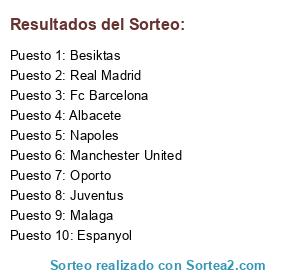 Lista de participantes: Fc Barcelona, Juventus, Real Madrid, Besiktas, Napoles, Espanyol, Manchester United, Malaga, Albacete, Oporto.