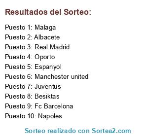 Lista de participantes: Fc Barcelona, Napoles, Juventus, Oporto, Espanyol, Malaga, Albacete, Besiktas, Manchester united, Real Madrid.