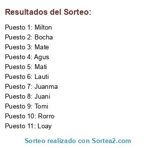 Lista de participantes: Mate, Agus, Tomi, Lauti, Juani, Juanma, Milton, Loay, Rorro, Mati, Bocha.