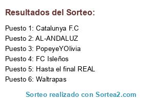 Lista de participantes: Catalunya F.C, Hasta el final REAL, PopeyeYOlivia, Waltrapas, FC Isleños, AL-ANDALUZ.