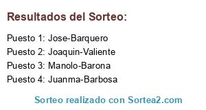 Lista de participantes: Juanma-Barbosa, Manolo-Barona, Jose-Barquero, Joaquin-Valiente.