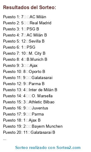 Resultados del sorteo: